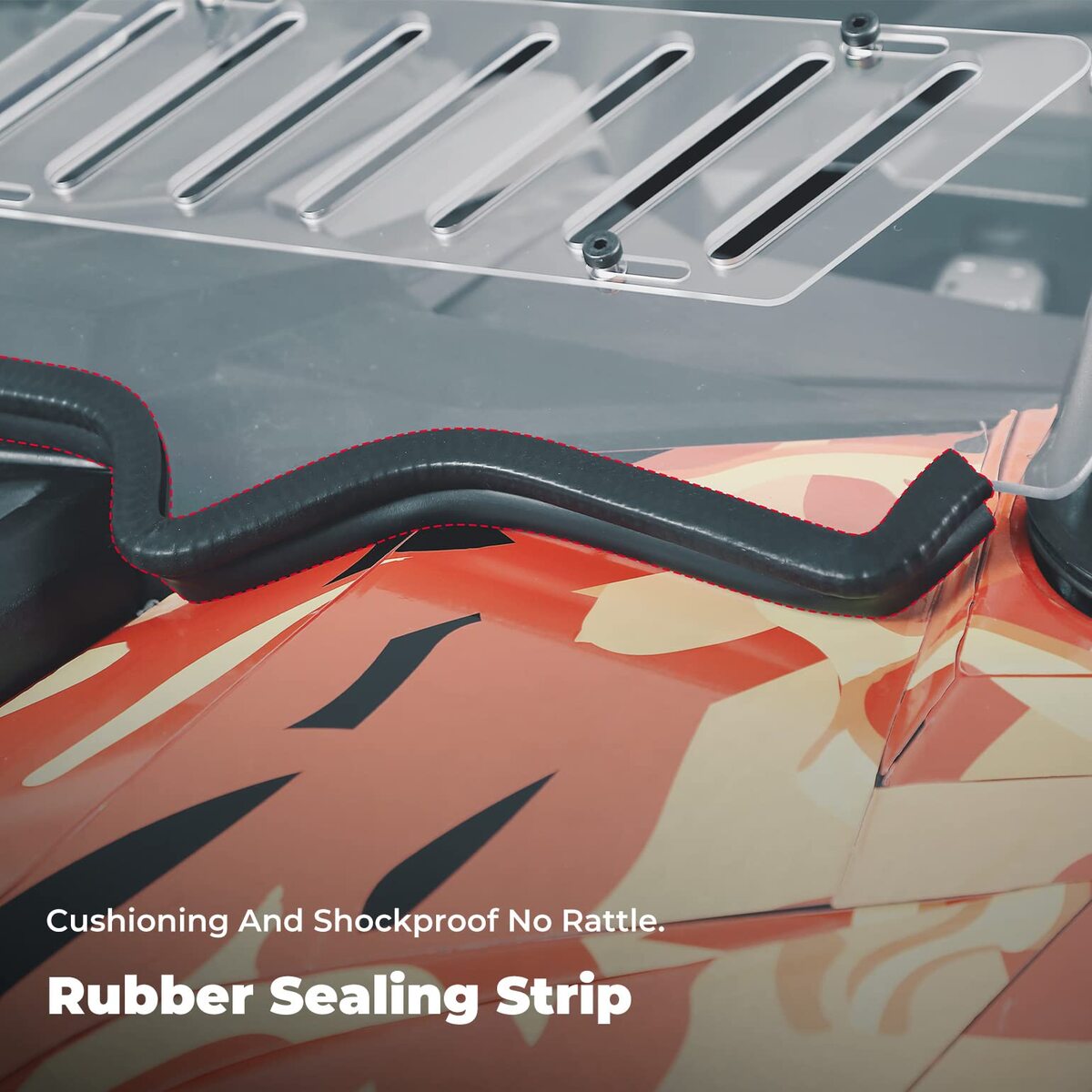 Silent Design: It is accurately made according to UTV frames, thickened bottom rubber strips ensure a tight connection with the engine cover and do not scratch or damage the hood, preventing dust and water leakage, Besides, the rubber strips will not make noise.