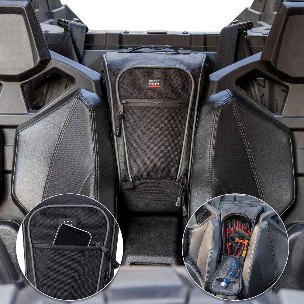 The Kemimoto 2020-2025 PRO XP Storage Bag is a durable, 1680D UTV cab pack center seat tool bag featuring a wear-resistant PVC zipper. This storage solution is compatible with Polaris PRO XP and PRO XP 4 models from 2020 to 2025, providing convenient and secure organization for your gear.