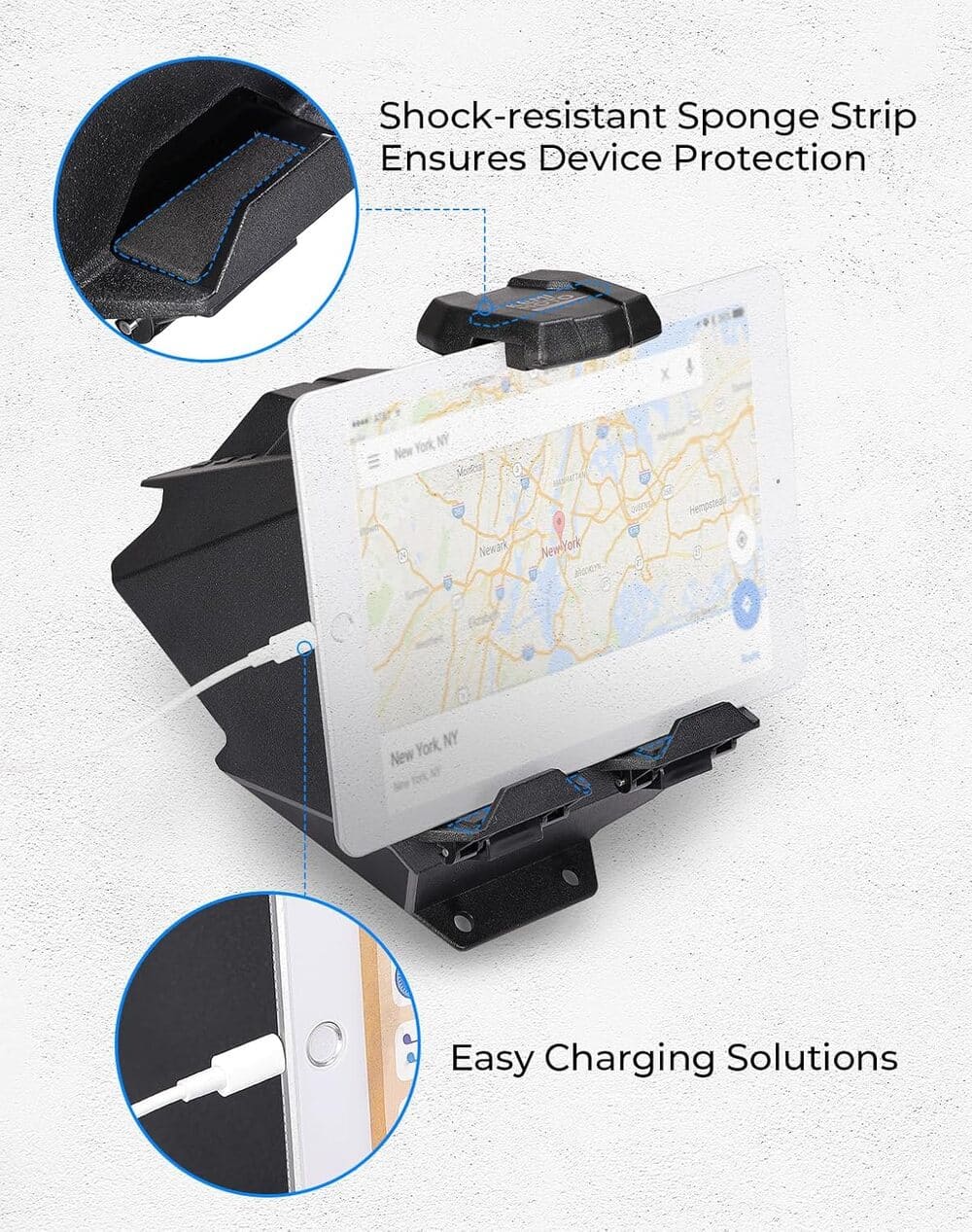 - Sturdy & Durable: Made from durable HDPE material, this GPS electronic tablet mount is built to withstand impacts, ensuring your navigation device stays firmly in place even while driving at high speeds.