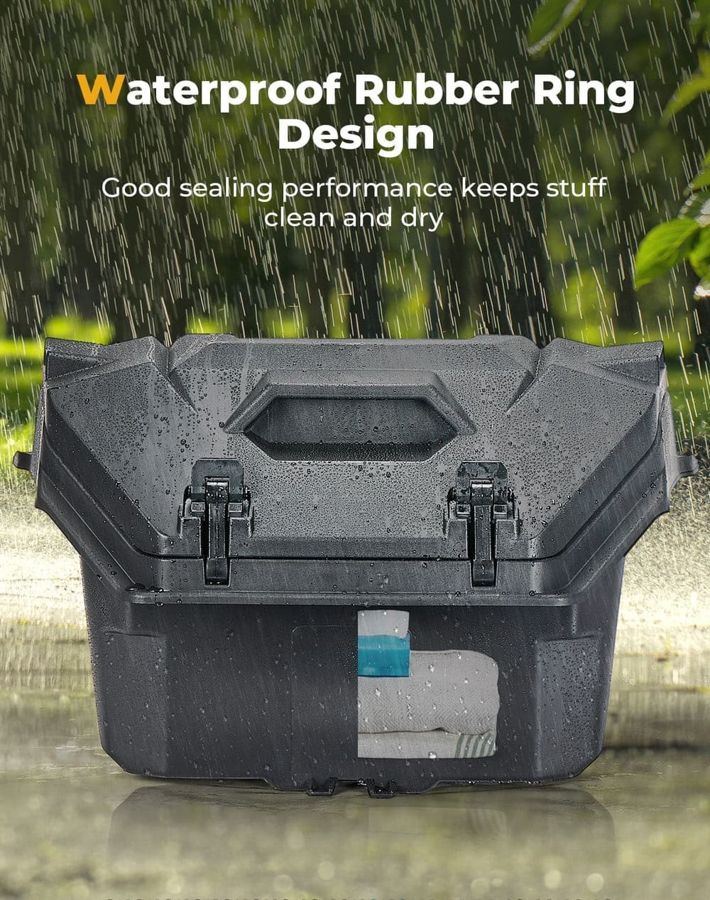 - Easy Installation: Mounting the UTV rear bed tool box takes under five minutes. Just place the cargo box into the SXS rear bed and secure it with two locks—no additional tools required. This side-by-side toolbox is also easy to remove, simplifying drainage and cleaning.
