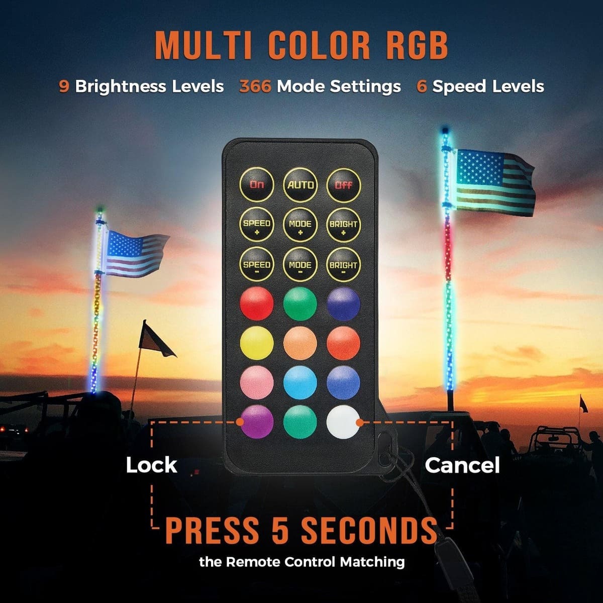 - Easy To Install: Kemimoto lighted whips for UTV have a quick-release mounting base for easy to install or take off, and you can also use the dust cap( 3ft not included) to prevent mud or sand stuck on the base. And American Flag with adjustable mounting clamps to prevent the flag from entangling, let the flag gone with wind freely.