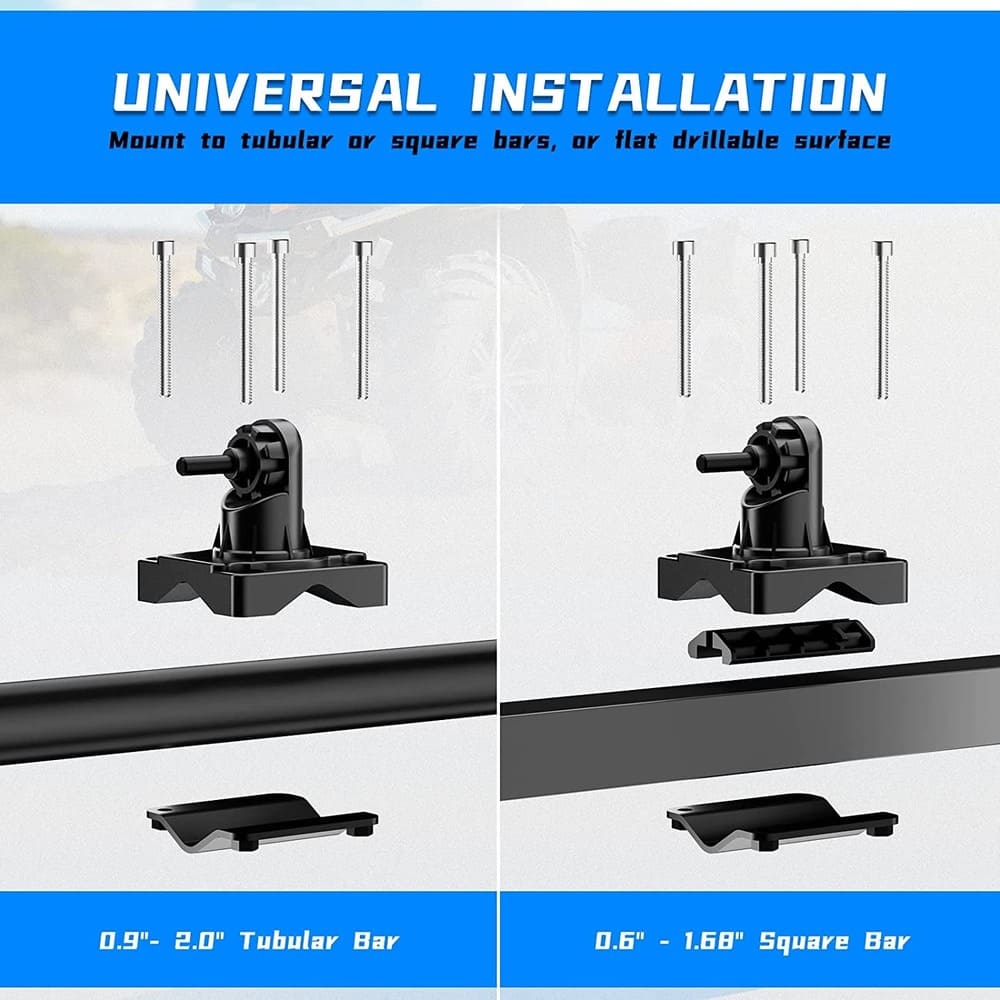 Versatile installation options: This 4 wheeler tool rack can be mounted to tubular bar(0.9"-2" diameter); square bar(0.6“-1.68” diameter); drillable flat surface up to 1.5" thickness.