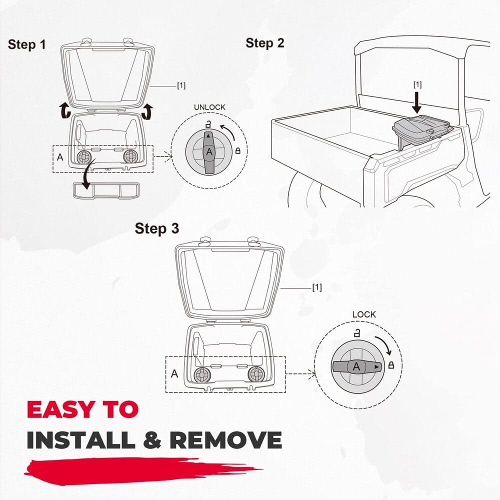 - Waterproof and Dust Resistance: IP67 waterproof grade removable storage bin will ensure your contents remain safe and dry for the rubber strip design, which will avoid the mud or rain entering in.