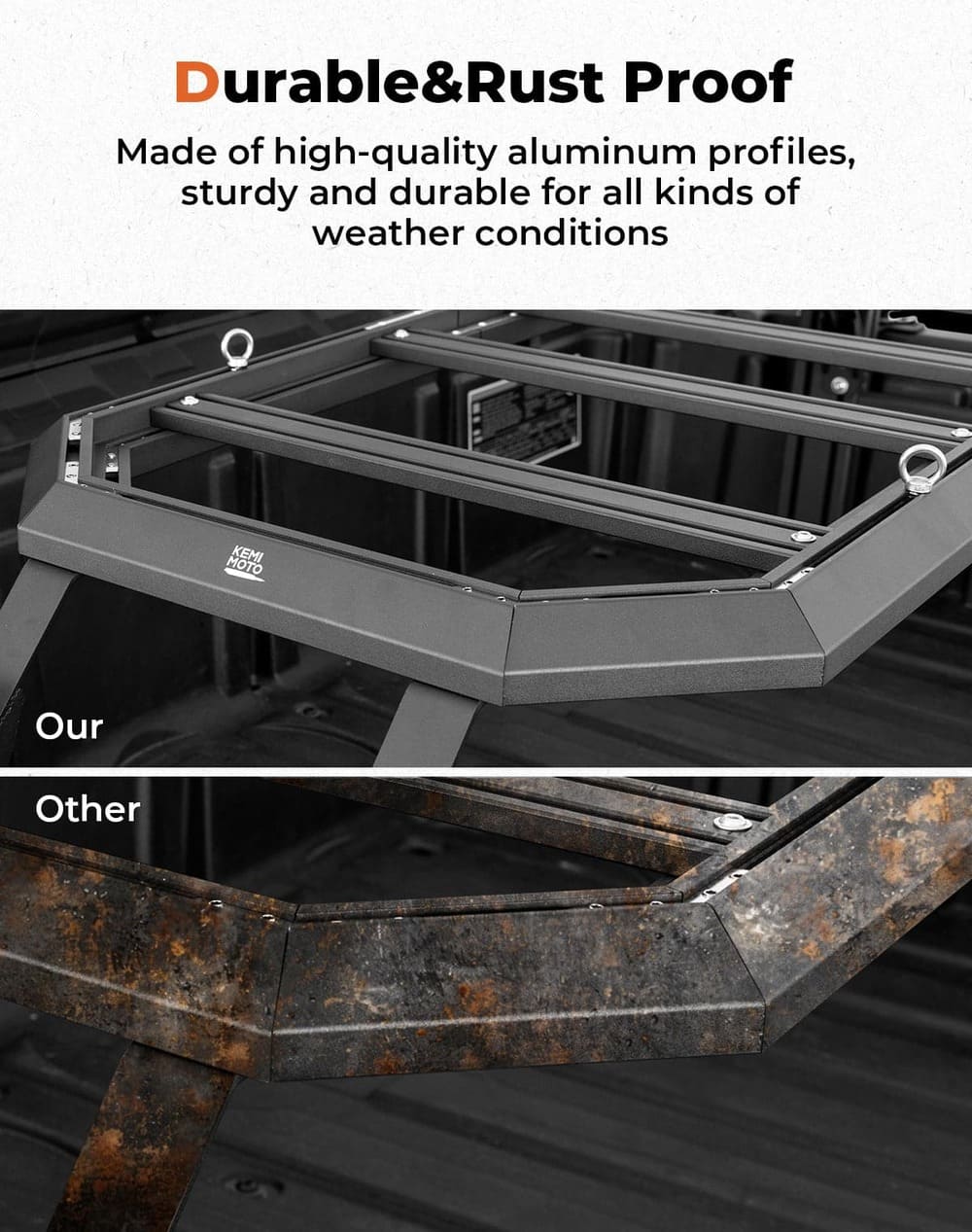 - Cool Looking: KEMIMOTO Rear Rack with a black lacquered, metallic look. Blends with the off-road style.