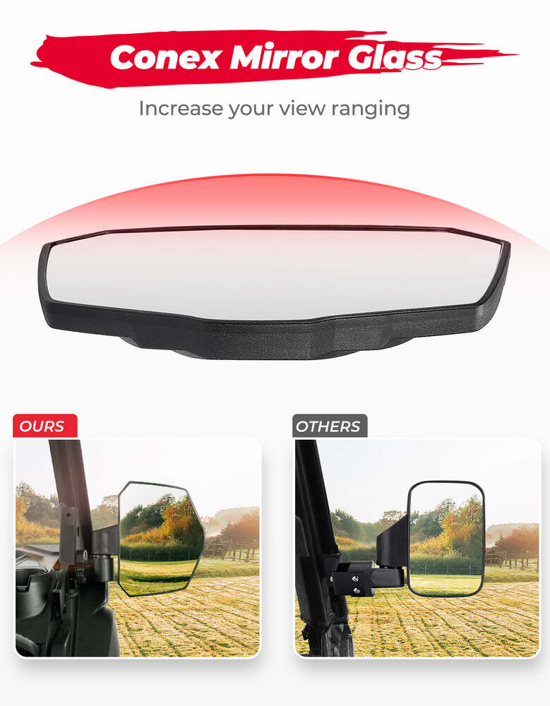 Enhanced Visibility: The KEMIMOTO UTV Mirror is designed to provide a wider and clearer view of your surroundings, reducing blind spots and increasing safety while riding. Perfect for off-road adventures and rough terrain, this mirror is a must-have addition to your vehicle.