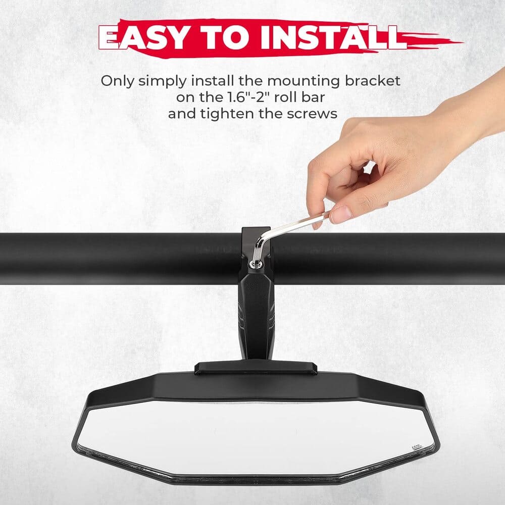 Wide-Angle Mirror: Universal utv rearview mirror compatible with RZR mirror provides your a clear view with a wide range. Rearview mirror for UTV center mirror can easily to prevent blind spots and some traffic accidents, and effectively improve driving safety.