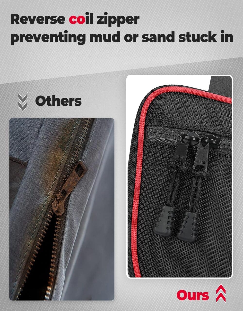 Update Zipper: Kemimoto X3 door bags with upgraded zipper which have a waterproof layer compared with ordinary zippers. The zipper loops are elongated and the two-way zippers can be used in both directions, making it more convenient to operate.