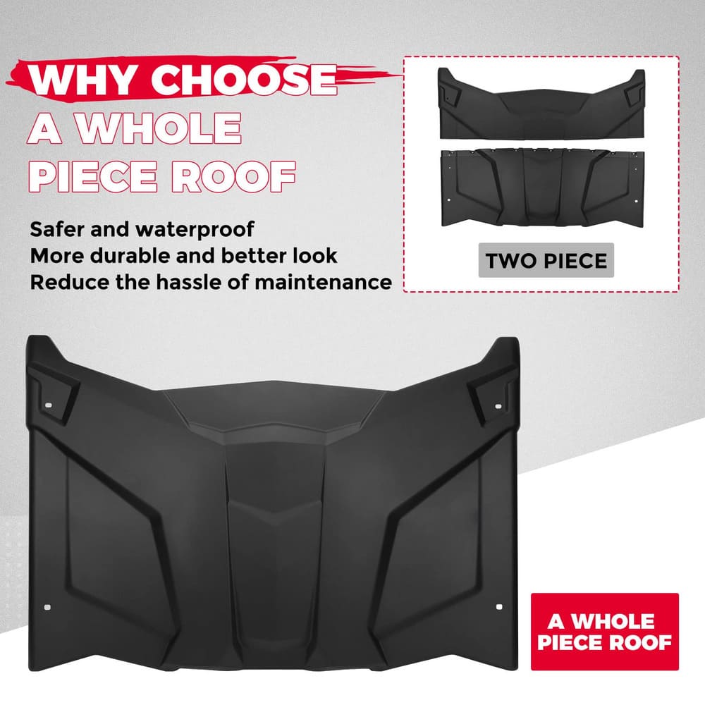 • Material: We use polypropylene to make this Can-Am Maverick X3 roof, the same quality as OEM, soft but strong and durable. This material is light, but it is strong enough to resist branches, boulders, and tumbling without adding too much weight.