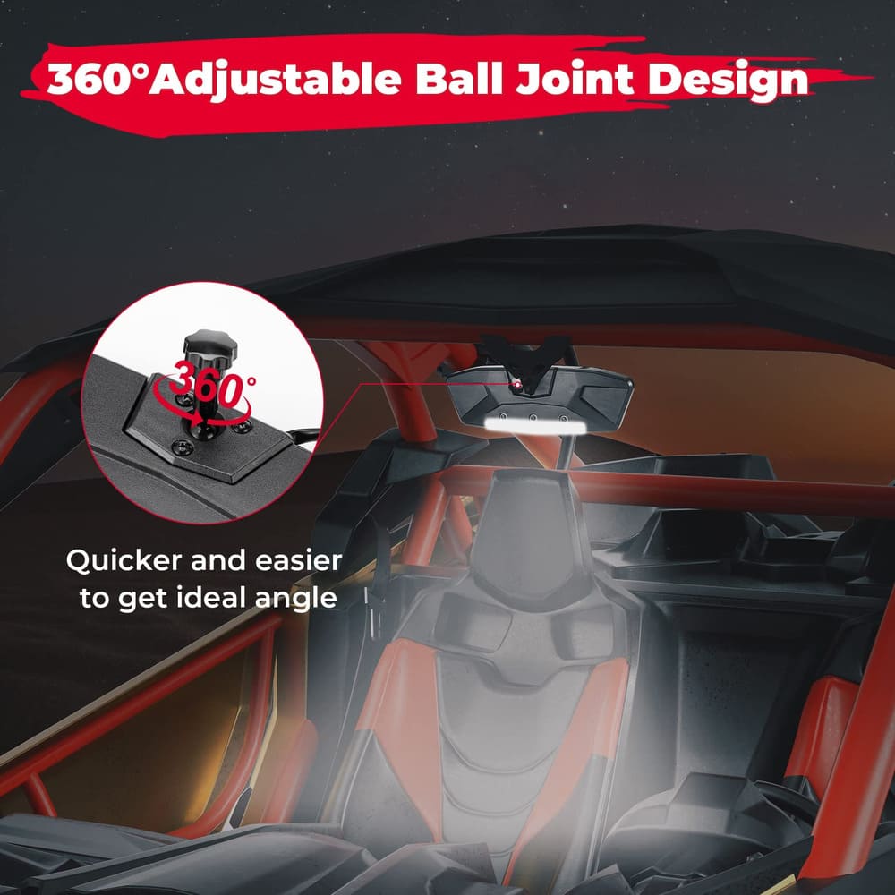 - LED Light & Rocker Switch: To improve visibility at night, KEMIMOTO designed a maverick x3 center mirror with an interior LED light with a rocker switch, which is up to 1000 lumens brightness and 50,000 hours lifespan to provide you with bright and durable utv center mirrors with lights.