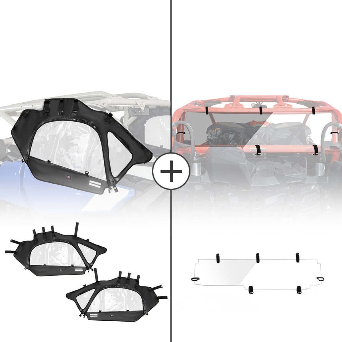 Work with all types of hard roofs, lower doors and mirrors. Compatible with Can-Am Maverick X3 all 4-Seat models (Except XMR because of the snorkel, unless you modify it), including: