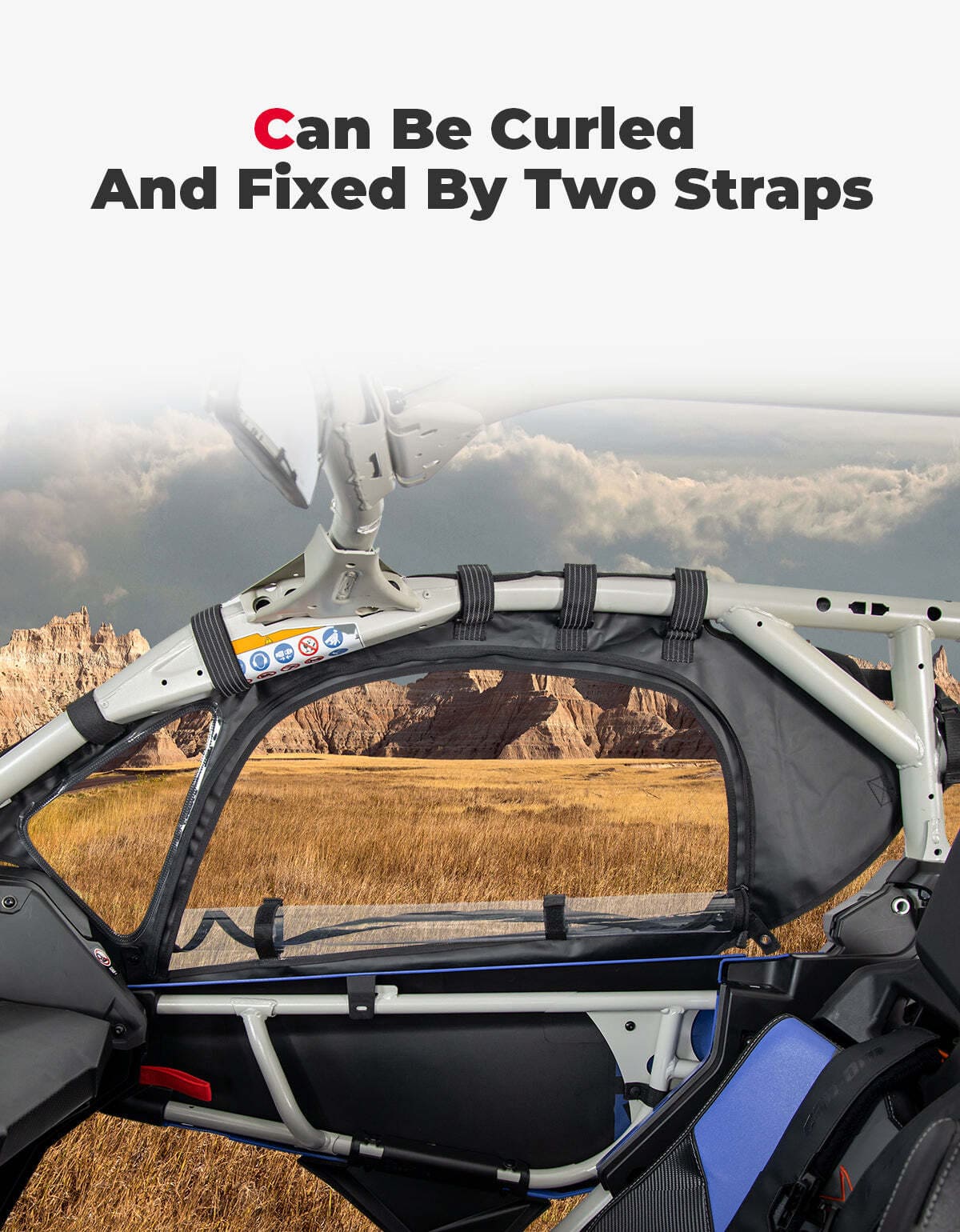 The Kemimoto Can Am Maverick X3 Max Soft Cab Enclosures can provide sun, rain and dust protection in summer, and wind, snow and cold resistance in winter. When ventilation is needed, the transparent film can be rolled up for storage. It can prevent rain, dirty water, mud, dust, leaves, bugs and other debris from entering the car, keeping the cab clean and tidy.