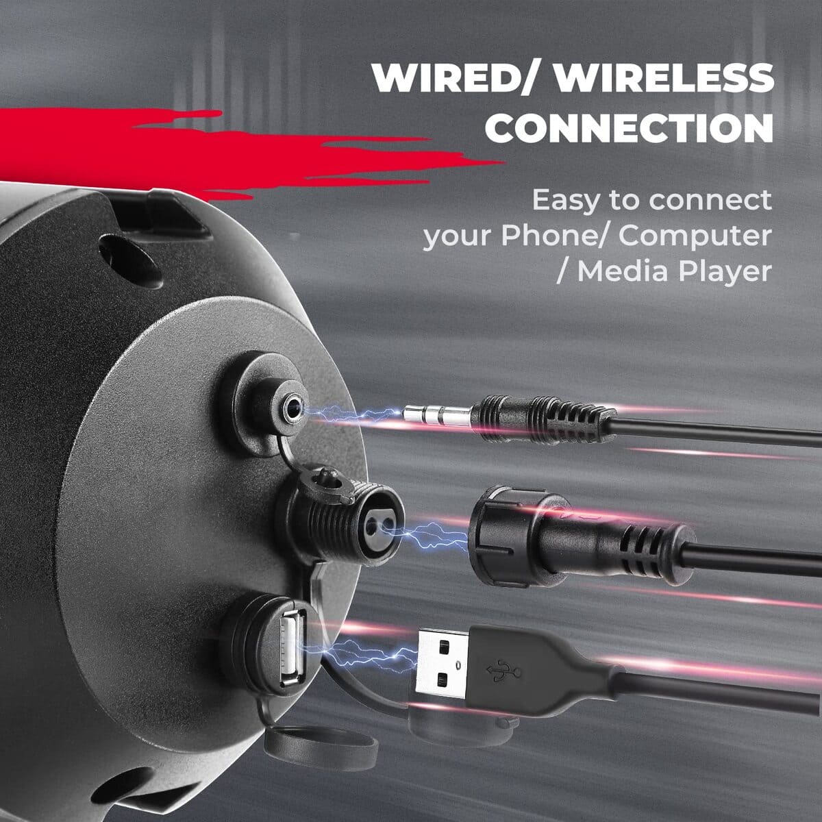 Many Connection Options: The Kemimoto UTV sound bar's audio system provides an easy setup for users with its wireless built-in Bluetooth connection, 3.5mm aux input, and USB charging port. Universal SXS speakers allow both iOS and Android systems to connect easily. If you wanna enjoy clearer music during a ride, you can use the 3.5mm aux input on your soundbar for connection to headphones.