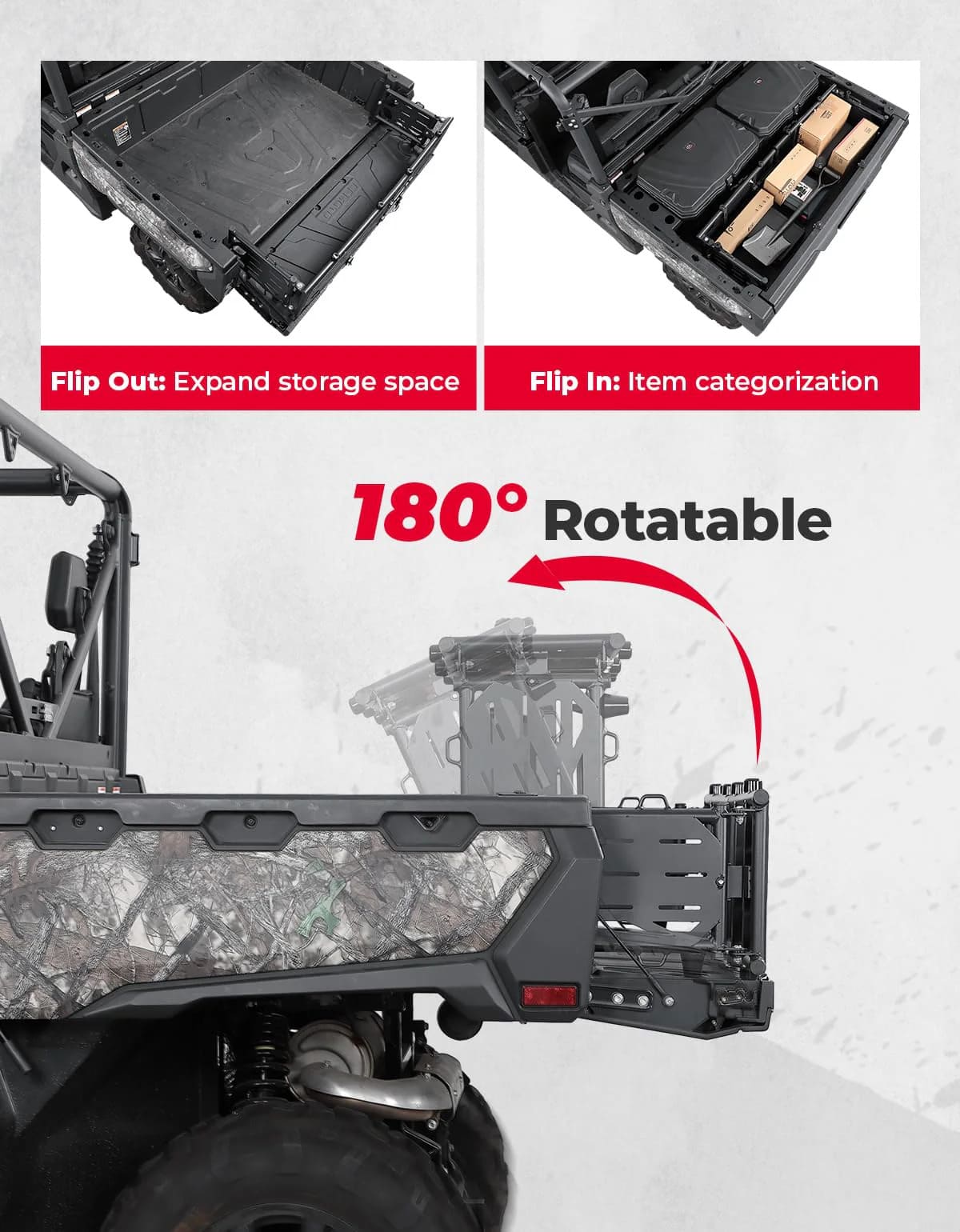 Flip Design: Kemimoto rear tailgate extender can be flipped 180 degrees according to your needs, allowing for expanded space when flipped outward and categorized storage when flipped inward.