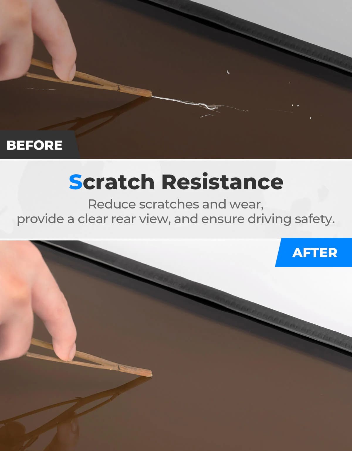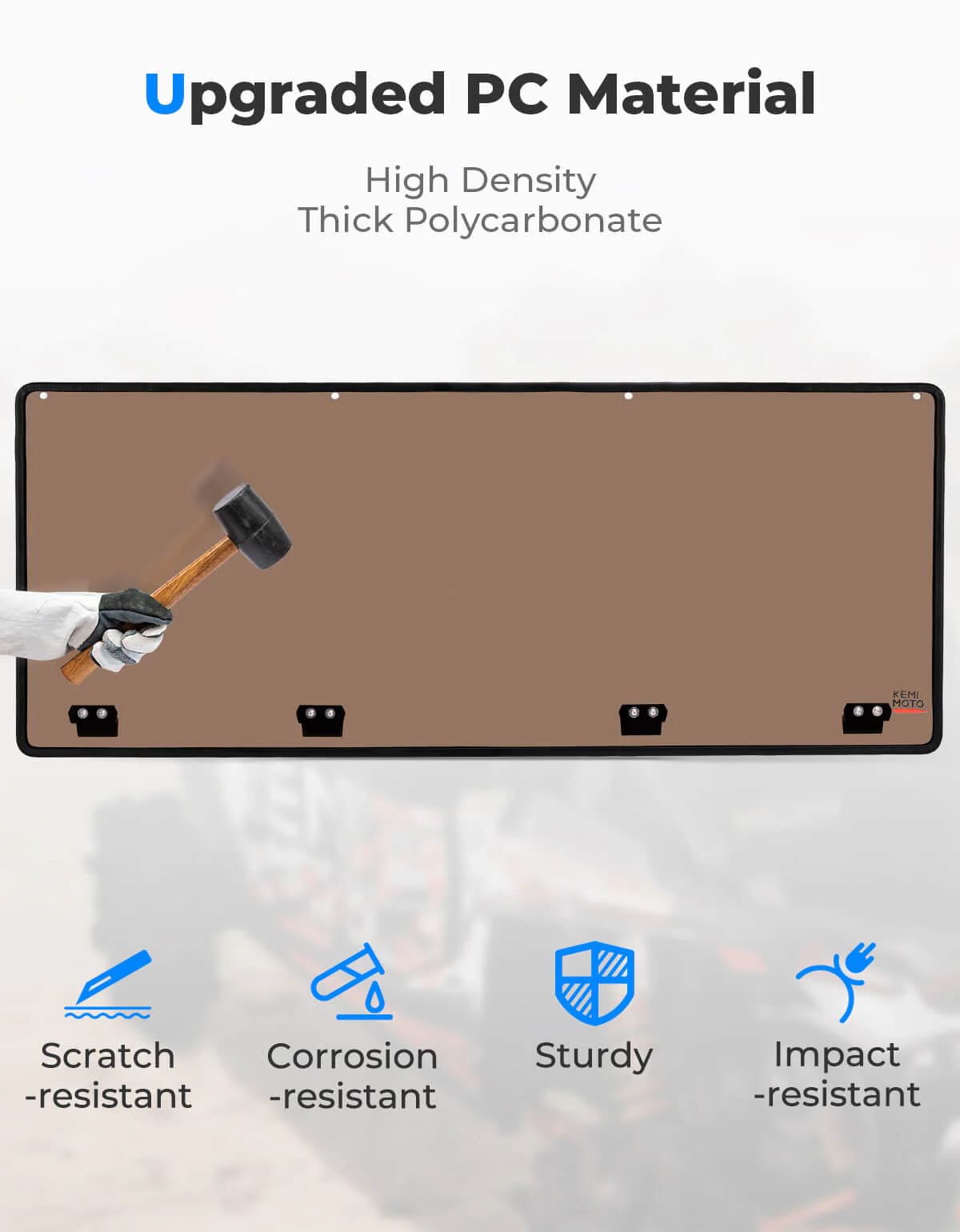 - Double-Sided Hardened PC Material: The KEMIMOTO rear windshield is made of double-sided hardened polycarbonate material, which is 250 times stronger than ordinary glass and 25 times stronger than acrylic. The rear windshield features advantages such as shatter resistance, impact resistance, corrosion resistance, and scratch resistance.