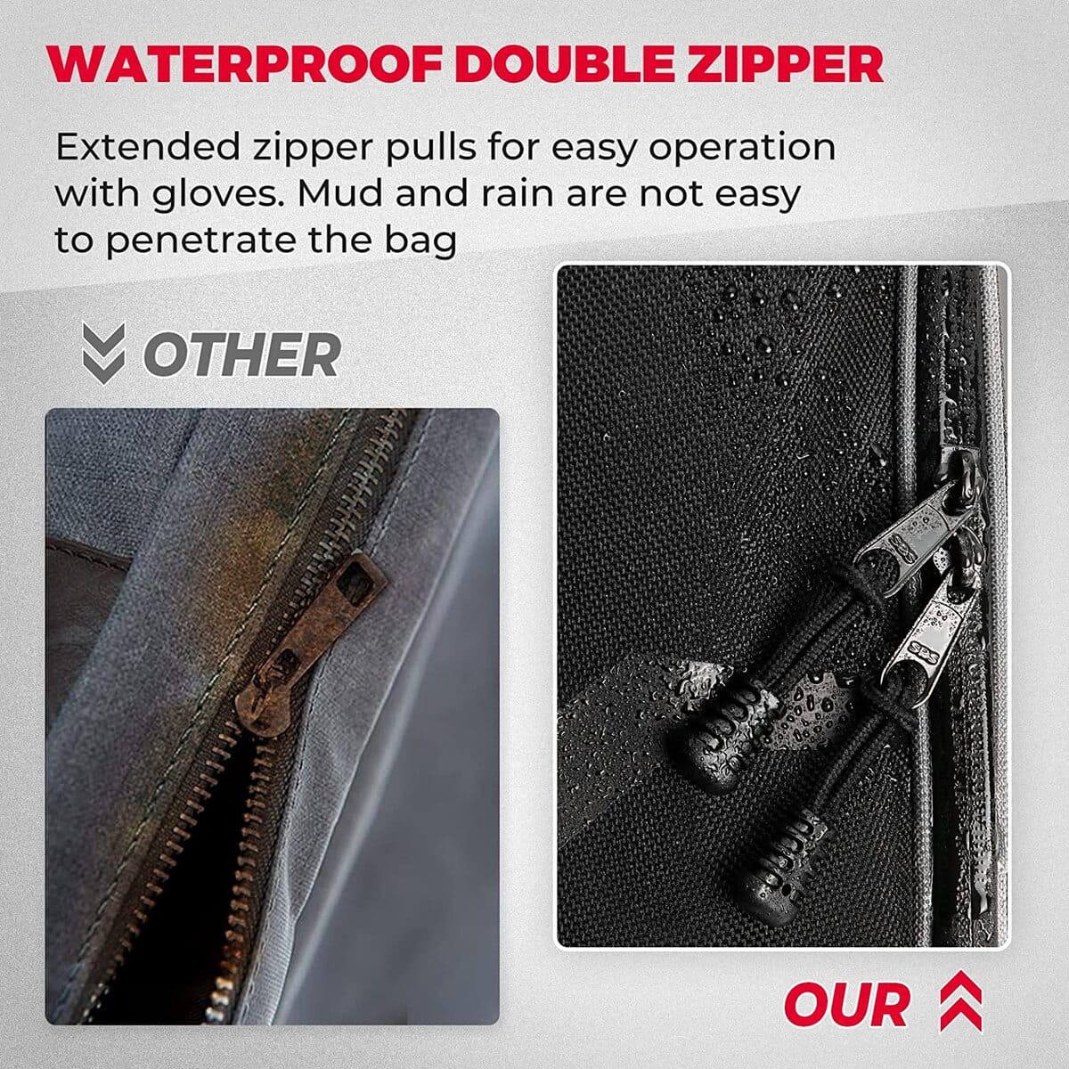 Waterproof Double Zipper: These lower door bags are designed with a double-ended waterproof zipper. Extended zipper pulls for easy operation with gloves. With 1680D water-resistant material, so mud and rain do not easily penetrate the bag.