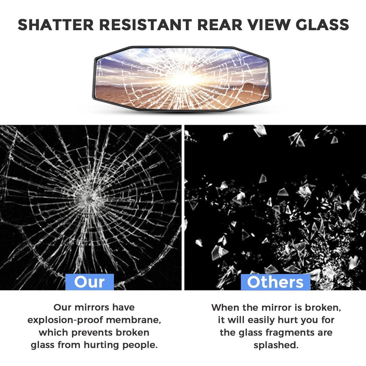 Kemimoto UTV rear view mirror uses a curved 3D glass design to provide you with a wide and clear vision, and improve the safety and experience of driving.