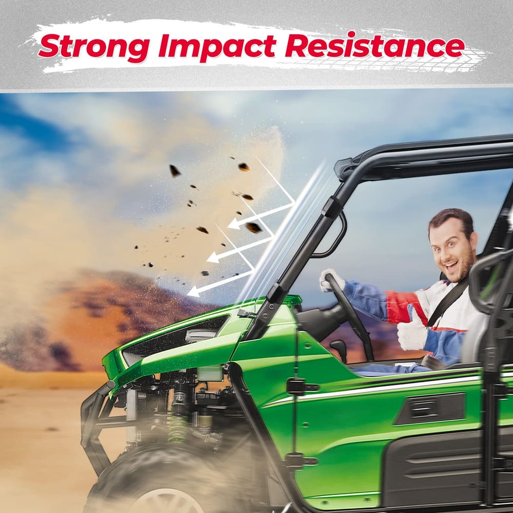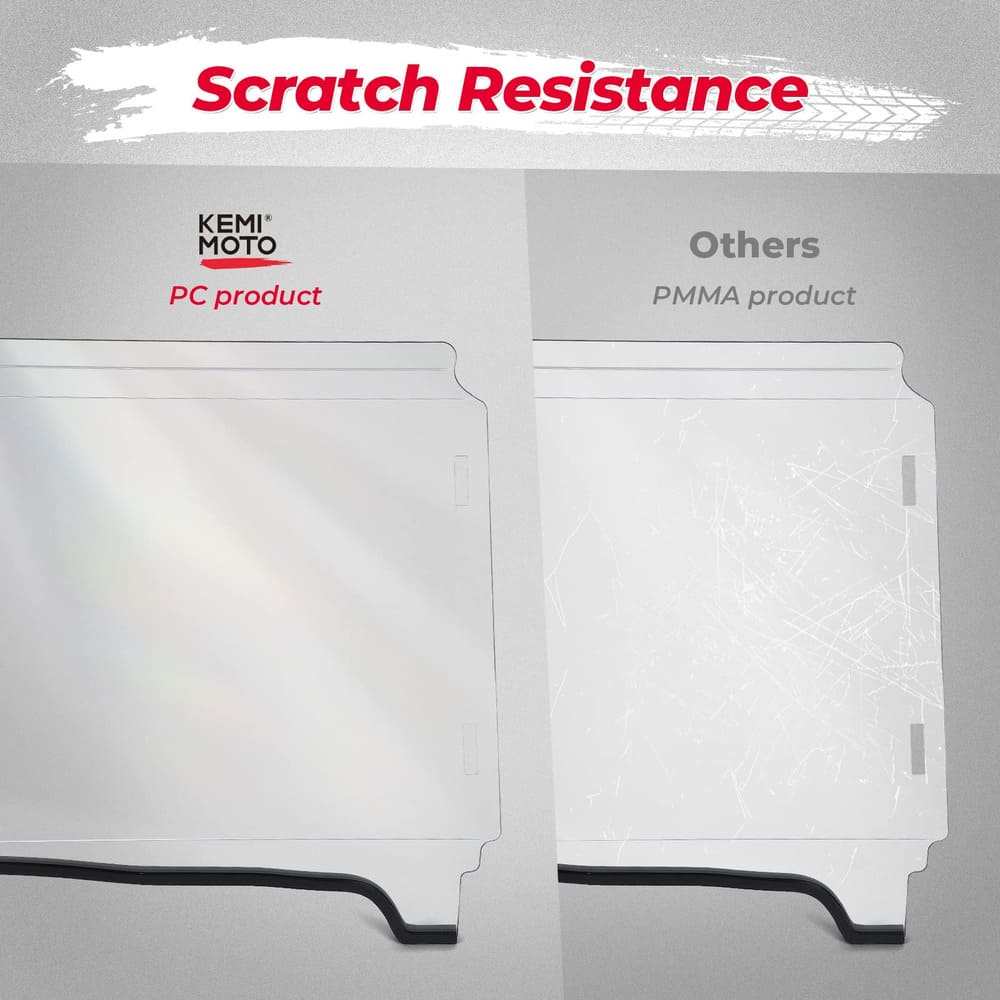 Premium Material: Kemimoto rear windshield for UTVs is made of high-quality polycarbonate,at 250 times stronger than glass and 25 times stronger than acrylic,can provide you a clear view and waterproof windproof dust-proof and puncture-resistant protection.