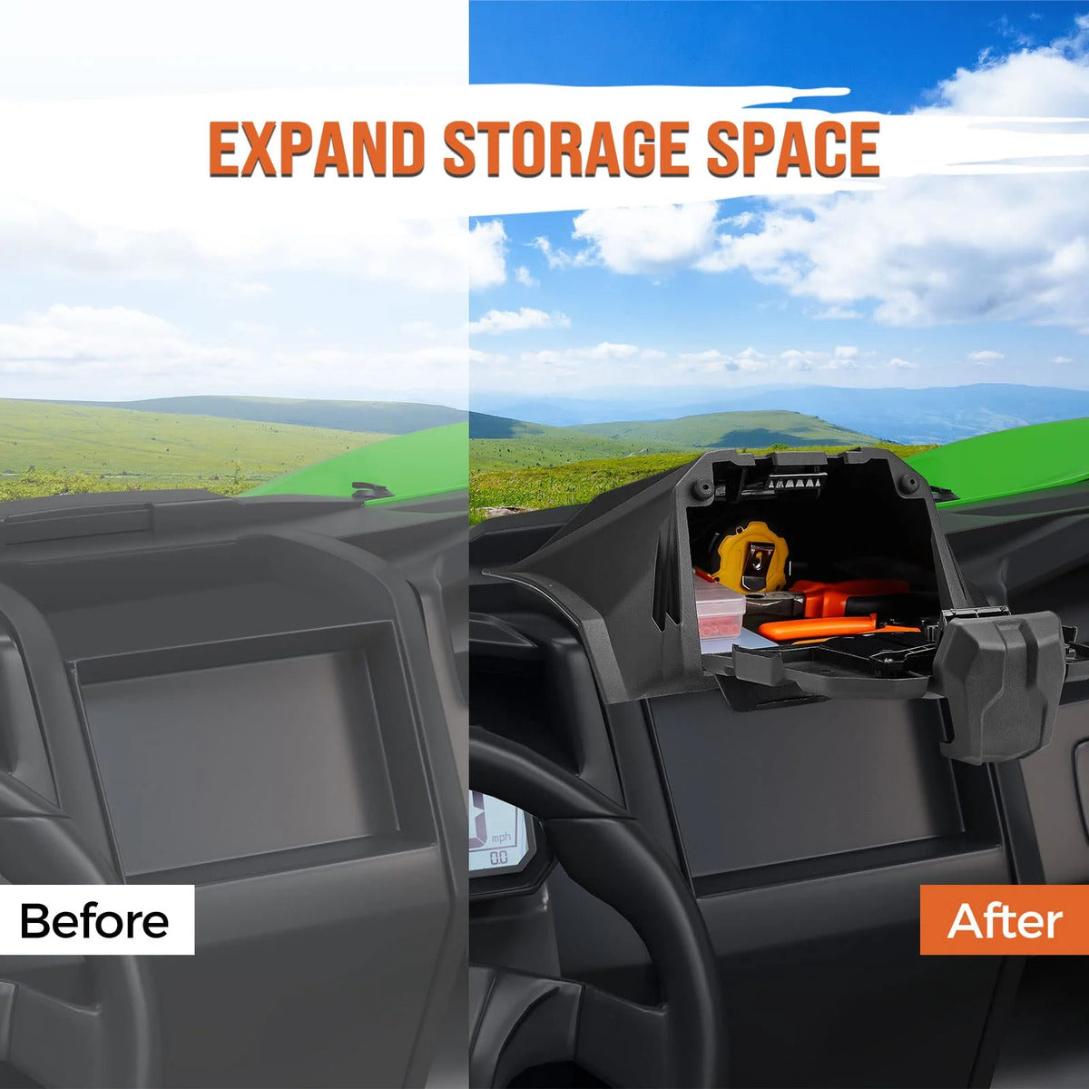 Want to make your Kawasaki KRX 1000 even cooler and more practical? Check out the Kemimoto tablet mount! This handy gadget not only holds your GPS securely but also gives you extra space for your phone, glasses, gloves, and wallet. Made from high-quality Polyethylene with soft rubber padding, it’s tough and keeps your stuff scratch-free. Super easy to install with all accessories included, and it hooks right up to the 12V power supply on your dashboard for easy charging while you're on the move.