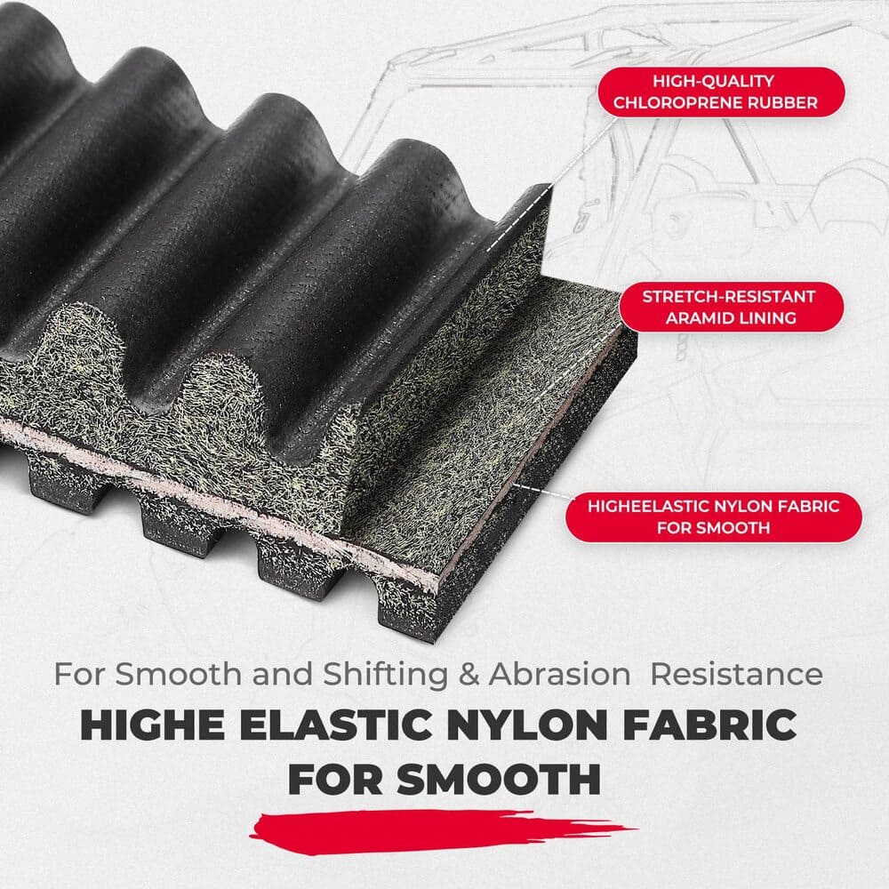 - 45000N Stretch Resistance: CVT drive belt provides stable RPM as the vehicle travels at variable speeds, ensures uniform force and effectively reduces speed loss, reduces belt failure, Kemimoto belt has been tested under harsh environmental conditions to deliver maximum performance under severe terrain from swamps and rocky trails to hill climb and desert treks.