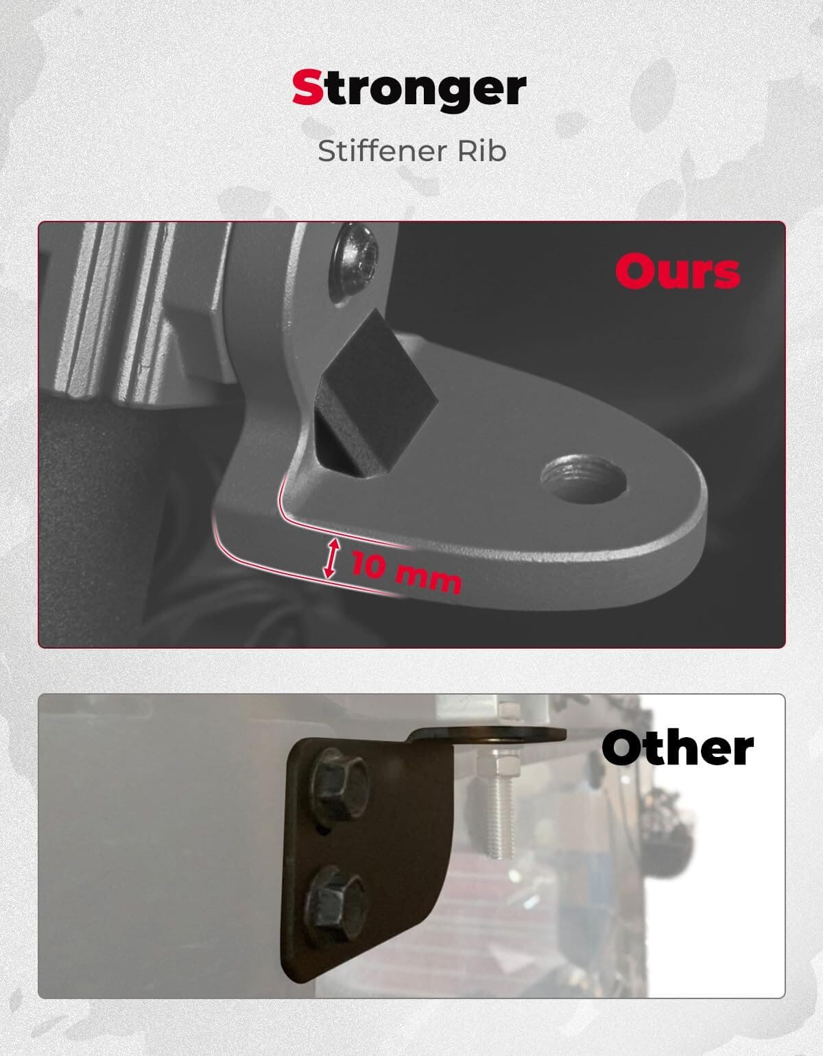 Stronger: Unique-designed flag mount using stiffener rib to be more stable. Cooperating with 10mm-thick base, flag bracket would hold your product up to much off roading safer, comparing with other sheet or plastic flag mounting brackets in the market.
