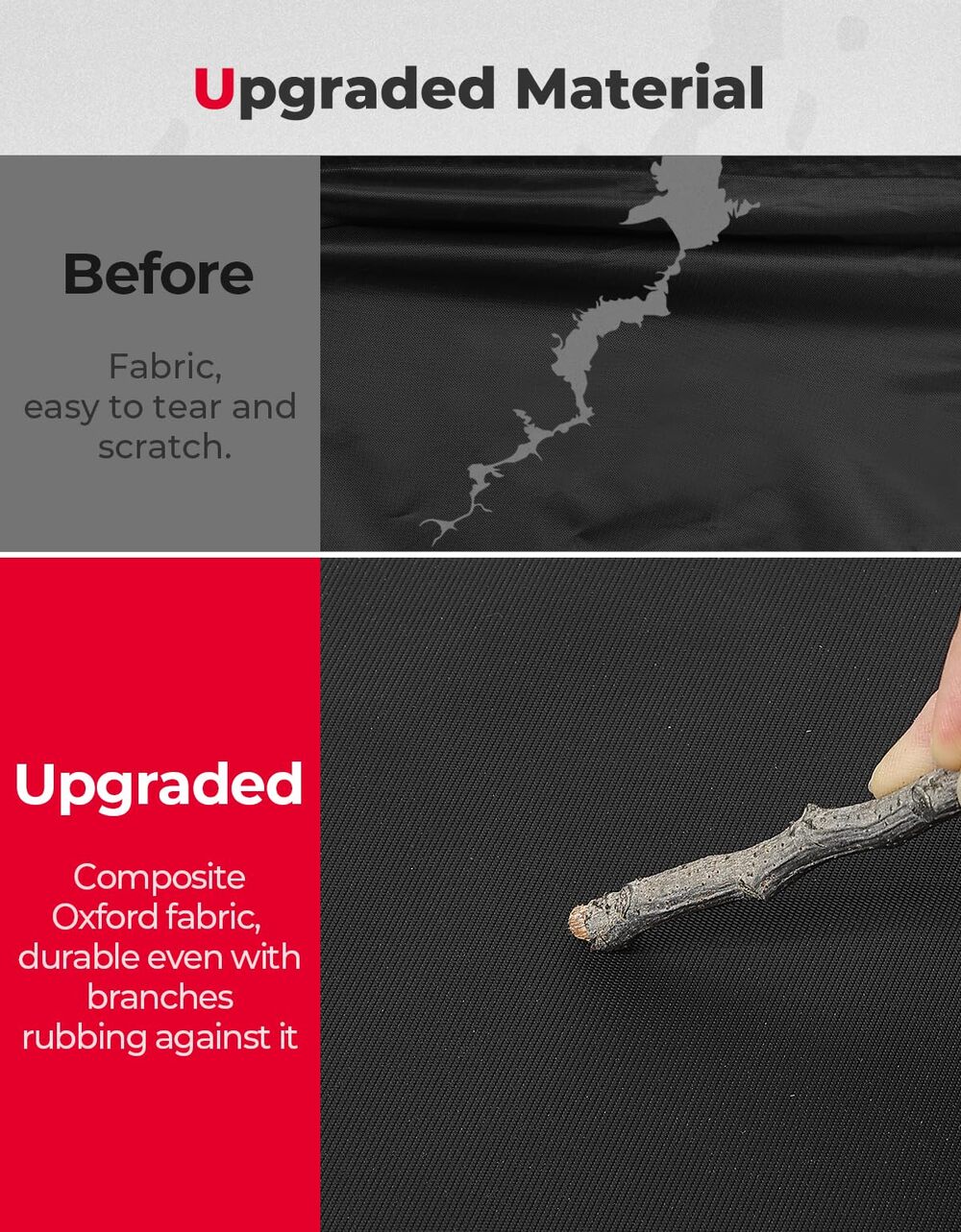 The Kemimoto soft top cover is fixed in all directions to prevent flapping and moving under speed. Made of durable Oxford cloth, this soft roof top is not easy to tear by branches. A must-have UTV accessory.