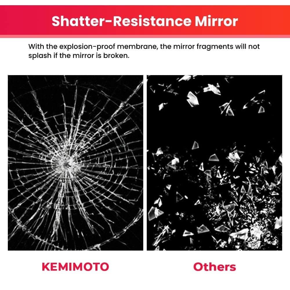 Upgraded Shatter-proof Design: Kemimoto side mirrors use upgraded shatter-proof lens, and you won't have to worry about glass shards hurting you or others if you break one of these mirrors.