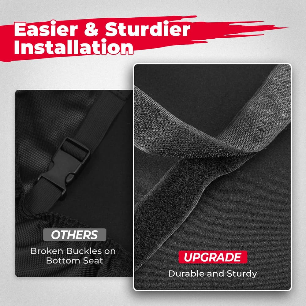- Easy to Install & Clean: The buckles of the bottom cover are UPGRADED to hook and loop fasteners to make your installation and removal easier, say goodbye to broken buckles on bottom seat part. Thanks to1680D oxford fabric, you just need to wipe rain, mud, snow and your dog's footprints right off with a damp cloth or spray hose.
