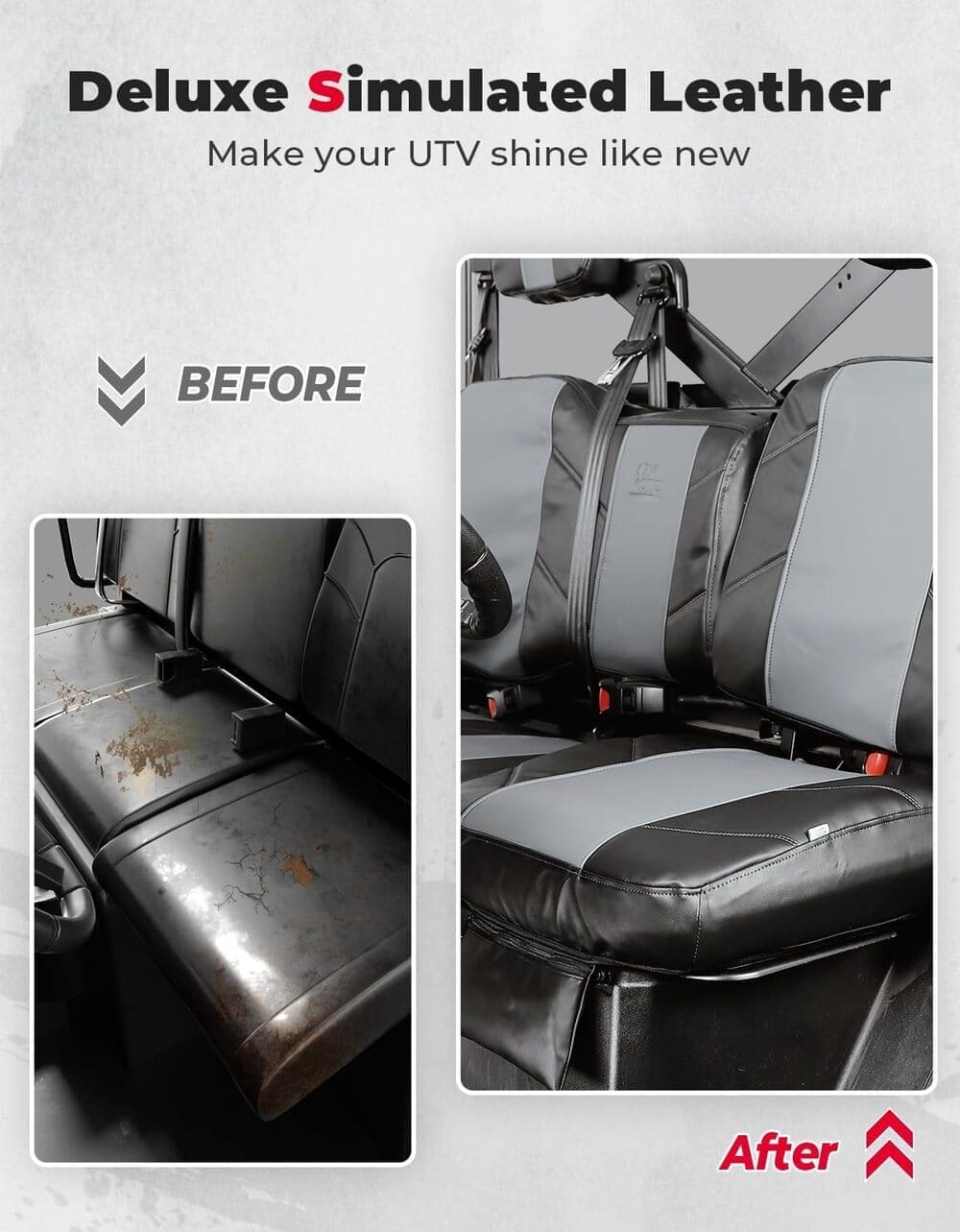 More Stylish & Protective: If you are looking for a stylish and protective seat cover, this is what you want. KEMIMOTO faux leather seat cover adds a touch of style and sophistication to your UTV's interior, giving your vehicle a more luxurious and high-end look. It also protects against spills, stains, and UV rays that can damage the original seats.
