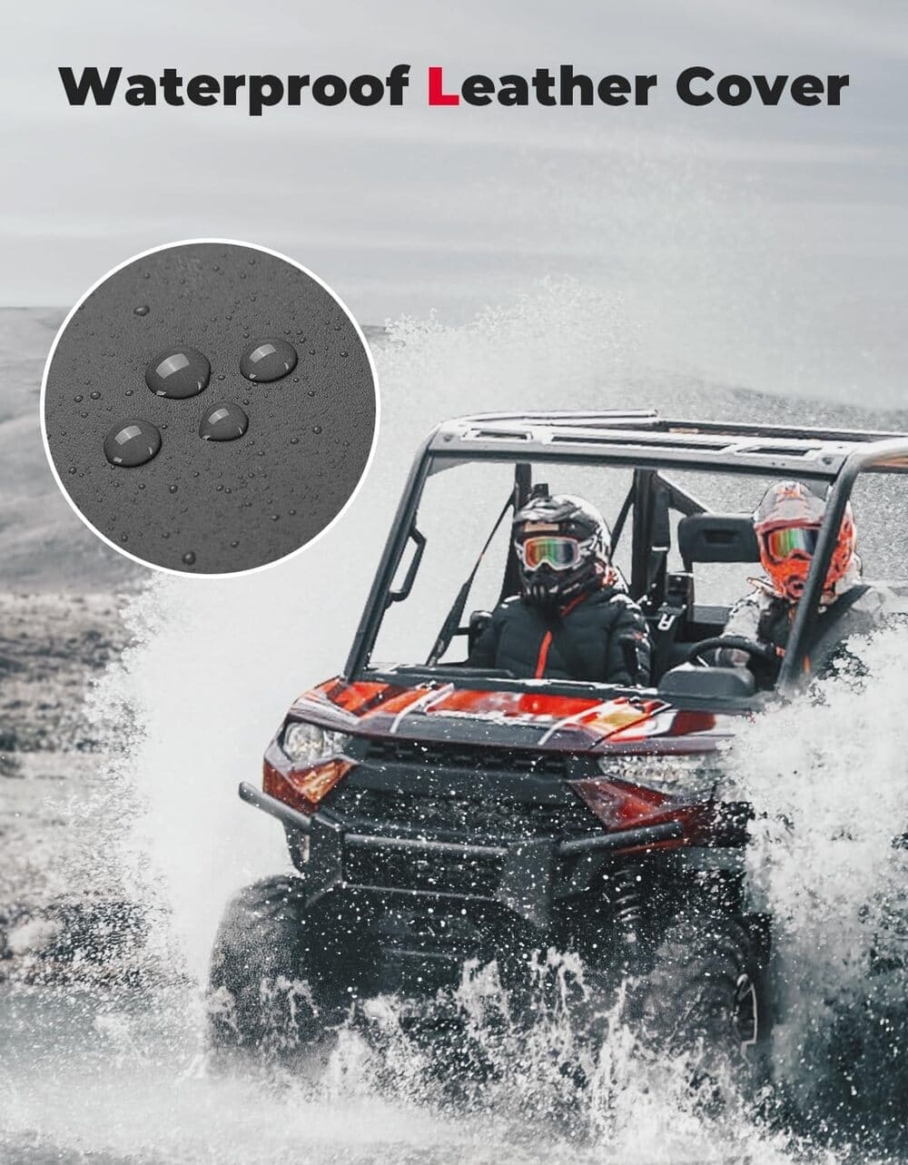 Upgrade your ride with KEMIMOTO UTV Leather Seat Covers with Pocket. These soft cushion seat covers are compatible with Polaris Ranger XP 1000/Crew 2017-2021 and Ranger 1000/Crew 2020-2024 models. Featuring a stylish 60/40 split bench design, these waterproof accessories provide both comfort and protection for your seats.