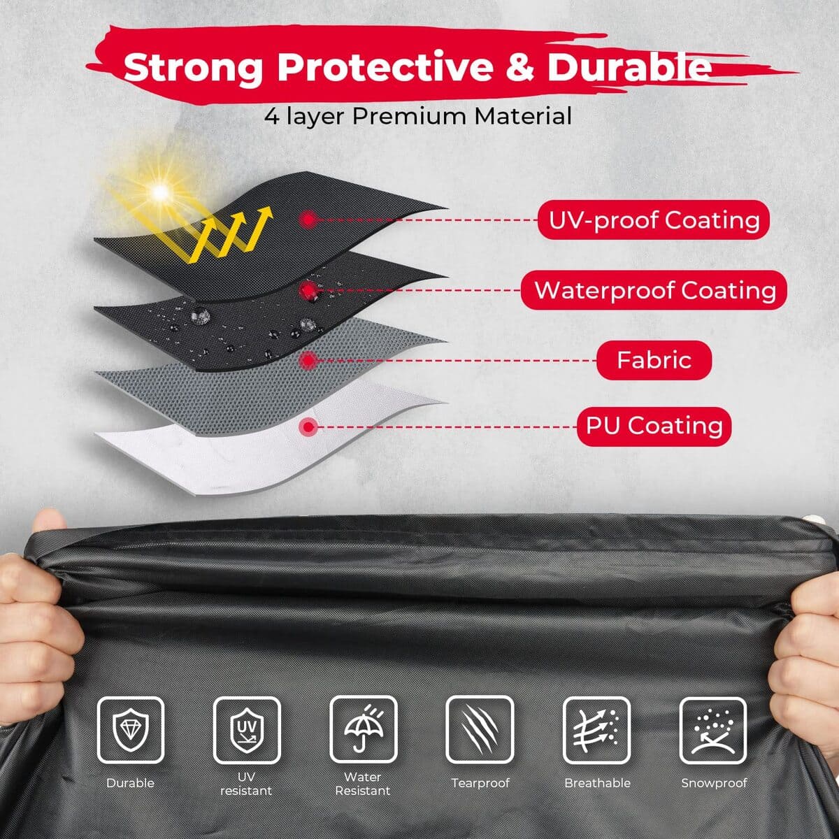 - Protection Guard: Made with innovative heavy-duty 210D polyester oxford cloth with waterproof PU coating and UV-Resistant coating in the backing, our kemimoto cover is thick and more durable than others.