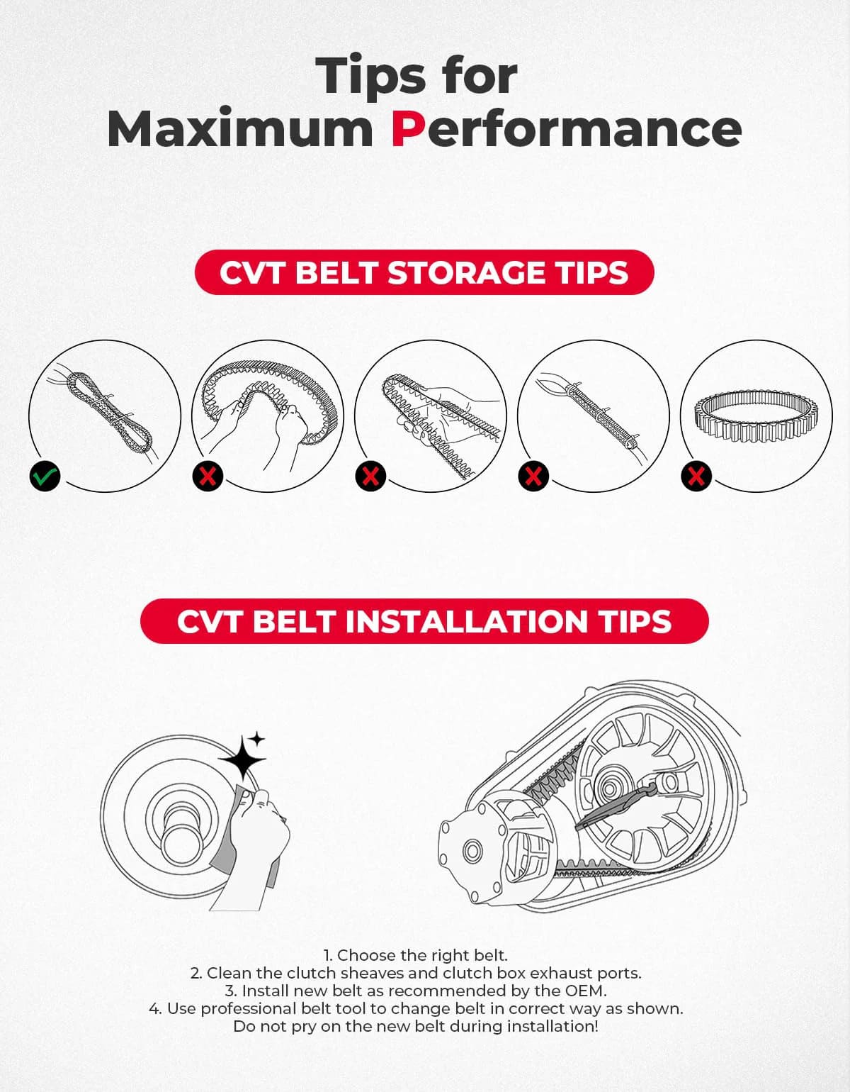 Strong Heat Dissipation: 170℃ high-temperature belts help prevent belt failure and prolong the life of the utv, which means less downtime and maintenance and more time on the trail. The belts also offer improved performance and power transfer, resulting in a smoother and more efficient ride.