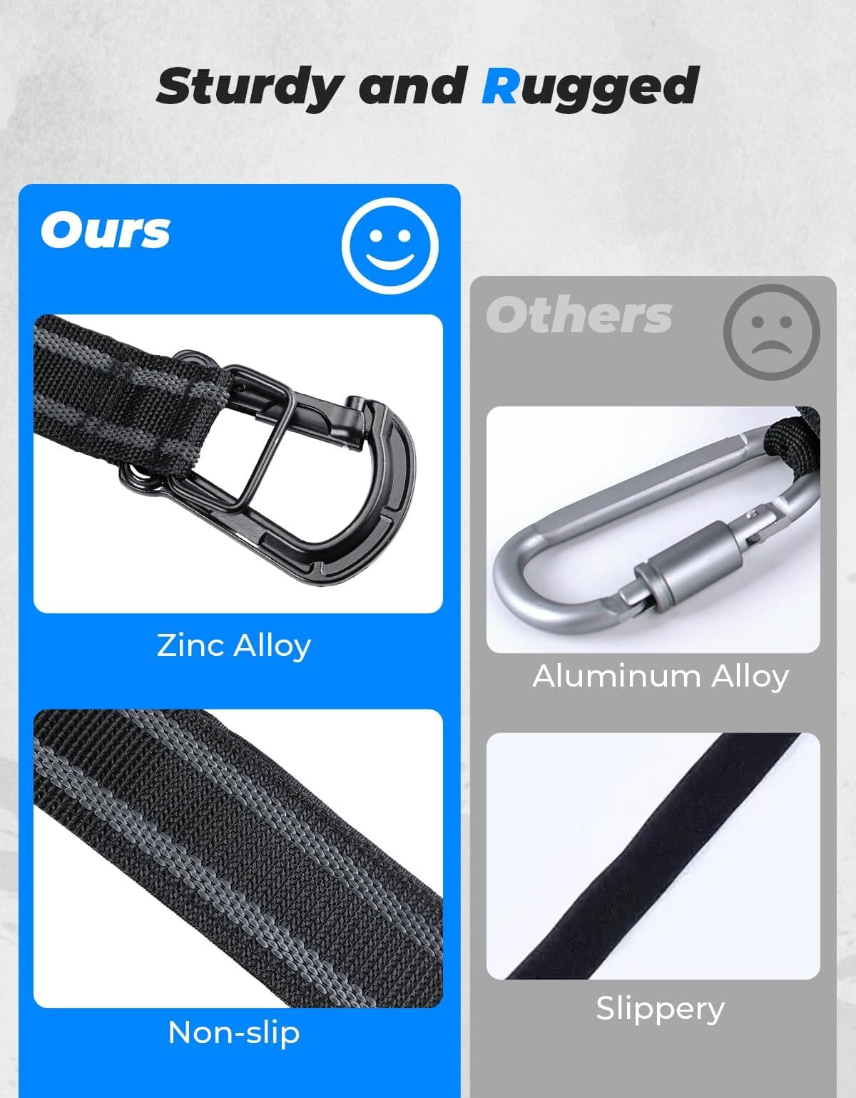 - Zinc Alloy: The hook is made of zinc alloy, impact-resistant and suitable for off-road environments. A single hook can bear up to 22 pounds of weight.