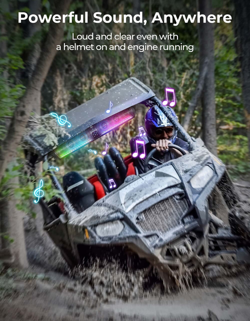 500w Powerful Audio With 4 Speakers 2 Tweeters: Seeking a high-volume UTV soundbar for an exhilarating ride? Look no further than the kemimoto sxs soundbar RGB. Equipped with 4 full-range speakers and 2 tweeters, along with a built-in class A/ B amplifier, kemimoto robust soundbar delivers immersive stereo sound even at high speeds on the road.