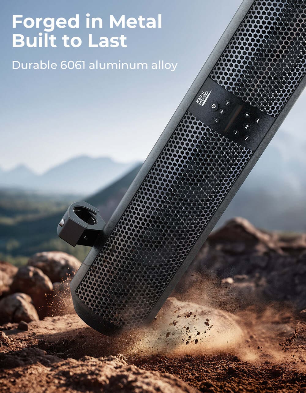 IP65 Waterproof Rating: Crafted with a specially designed exterior, grill, and hardware, marine sound bar meets the IP65 International Standards Level. It allows you to enjoy music in any environment and weather conditions, sand, dirt, snow, or rain, etc.