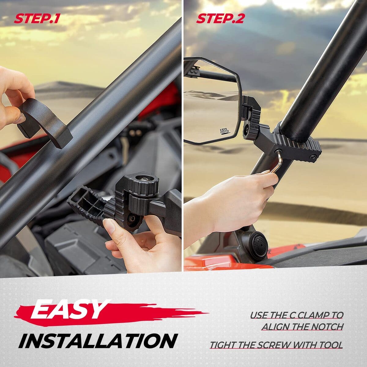 - Easy Installation: Kemimoto UTV side mirrors are simple to install; just tighten the screws to secure it to the roll bar. Unlike others, our UTV rearview mirror can be adjusted after installation, eliminating repeat installation. We also provide rubber mats, which may assist your mirrors to stay in place and decrease noise while driving. If necessary, you may add it during installation.