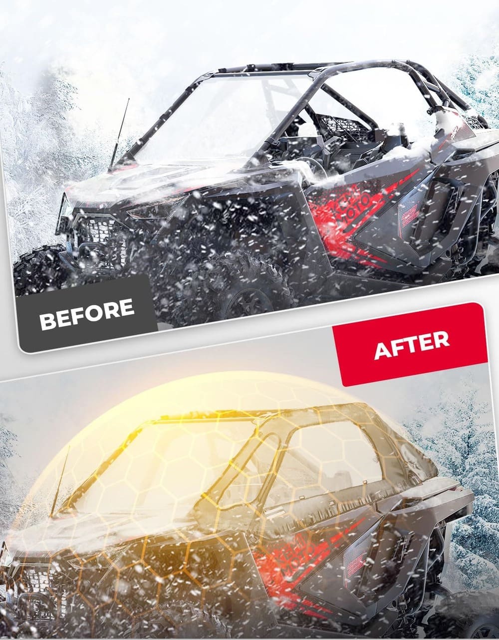 - Roll Down The Window: For best airflow, roll up the windows and fasten them easily. Just 3 seconds, prepared for any wonderful ridings. The enclosure kit is compatible with 2020-2024 Polaris RZR PRO XP/Turbo R 2-seat.
