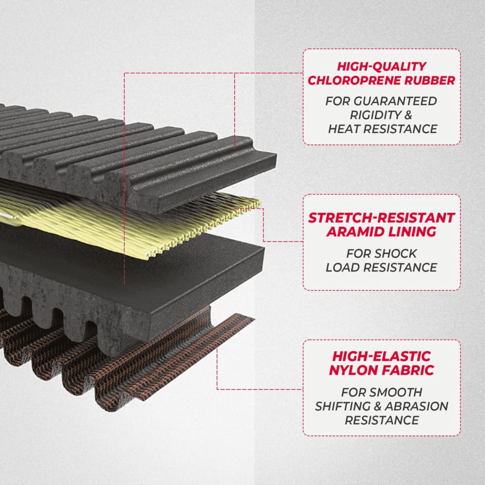 - Three-Tier Design: High temperature resistant High-strength thick rubber, Stretch-resistant aramid yarn. Make the RZR Turbo drive belt become strong and sturdy. Effectively improve service life.