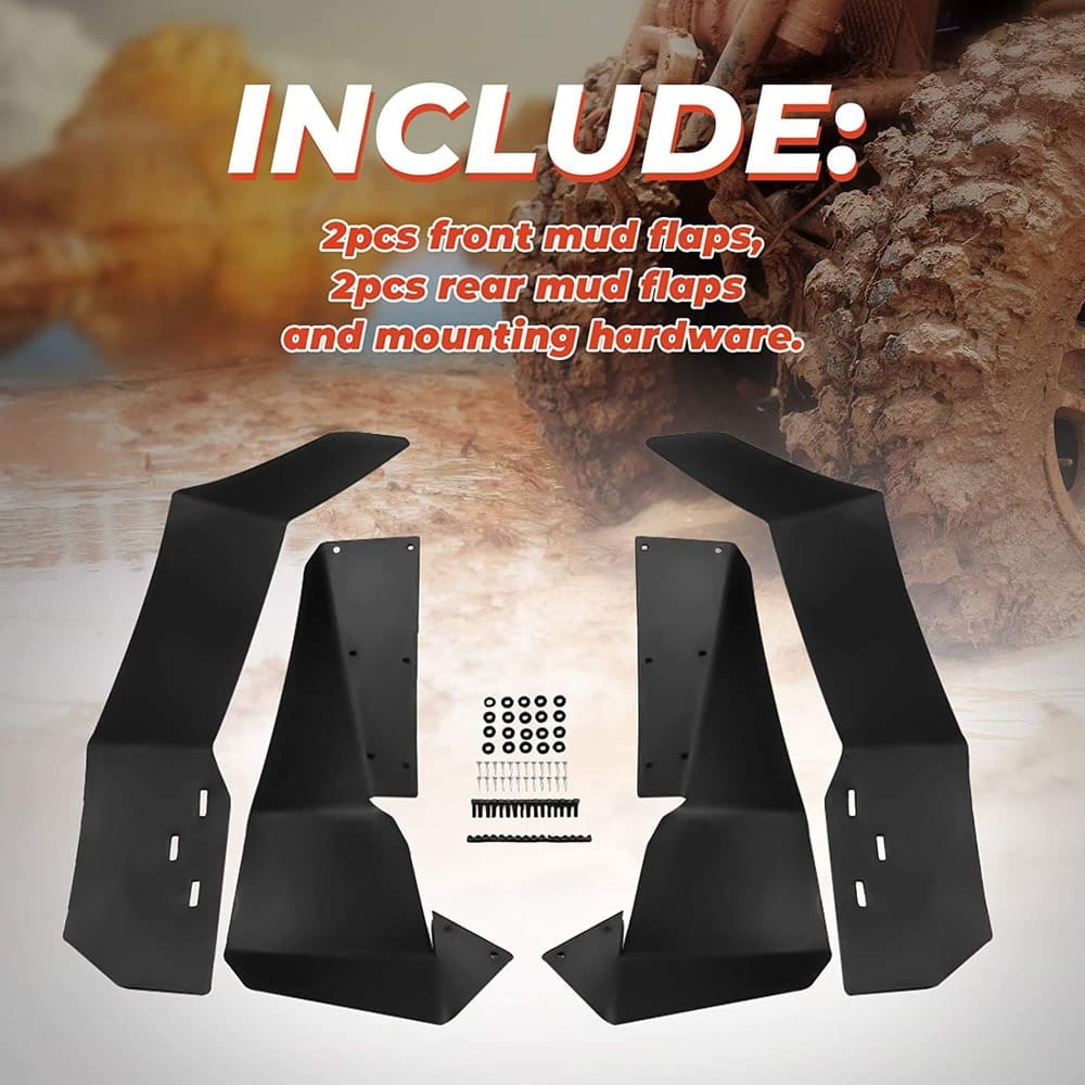 - Longer and Wider than OEM flaps: Our mud flaps offer significantly more coverage. Bevel engineered to the highest quality standards. You are able to ride on muddy trails and not stop every 10 minutes to clean the windshield.