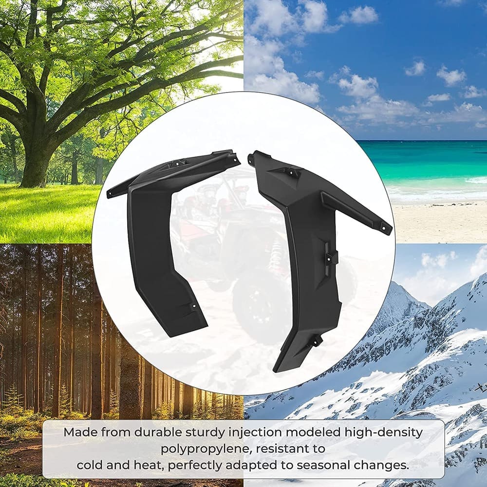 Enhance your Polaris RZR with Kemimoto XXL Wider Fender Flares, extended to 8.5 inches for maximum coverage. This 2-piece set is compatible with 2014-2023 Polaris RZR XP 1000, Turbo/S 1000/900, and 900S models, both 2 and 4-seaters, matching OEM#2881985 for a perfect fit. Enjoy superior protection from mud and debris on every adventure.