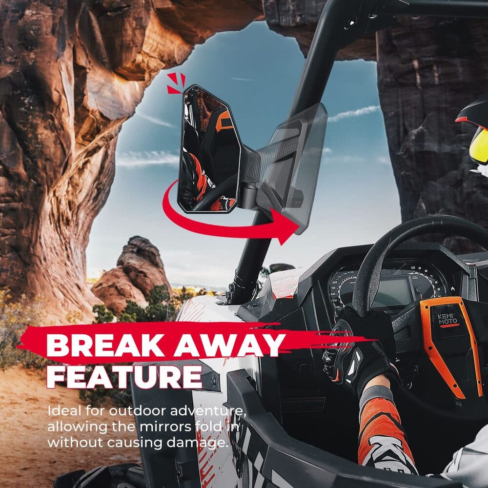 High-quality for offroad adventure: Made of high impact ABS housing and shatter-proof tempered glass, Kemimoto side view mirrors for UTV can maximize your safety and prevent you from getting hurt by broken glass.
