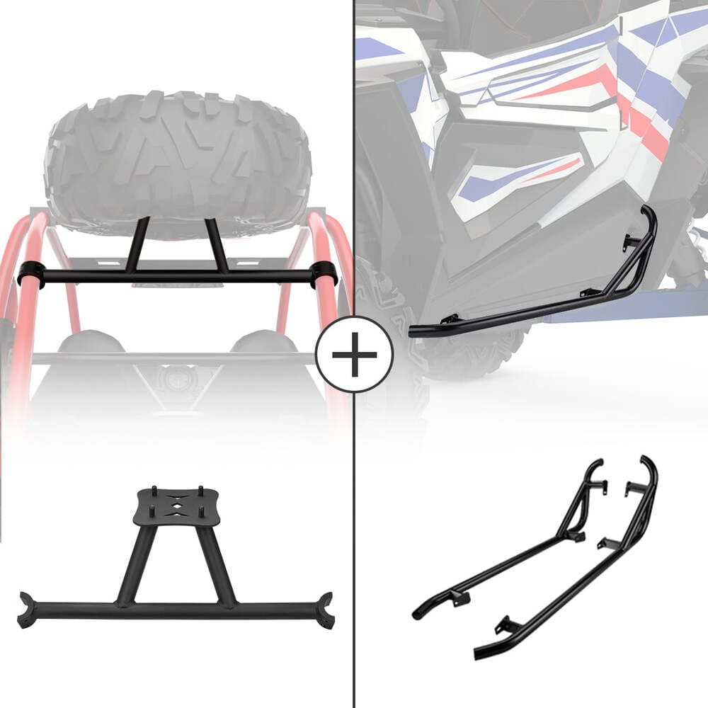 Kemimoto Polaris RZR XP 1000 Spare Tire Carrier Mount & Side Nerf Bars Rock Sliders
