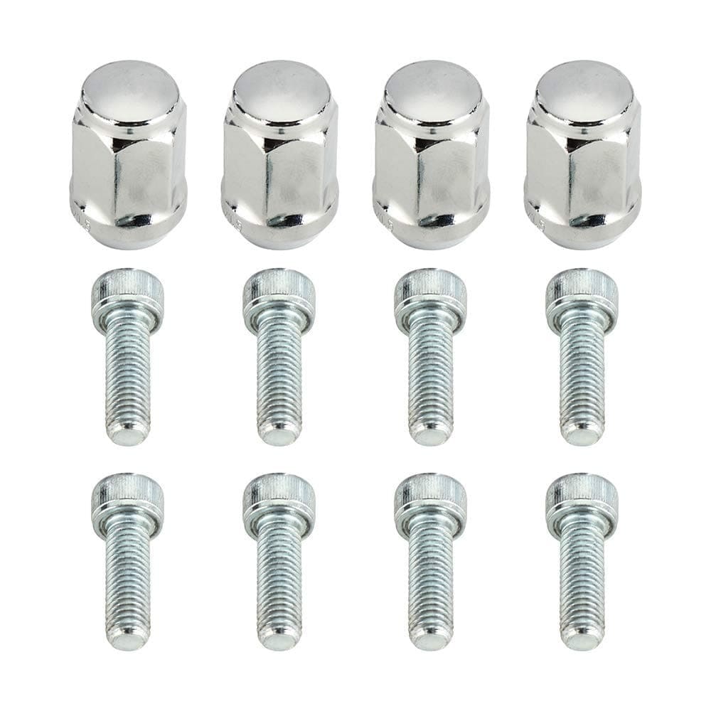 The spare tire holder wheel stud is M12*1.5, and the package will come with 4 chrome lug nuts (M12*1.5). Note: Come with two thread sizes: 3/8 x24 and M12x1.5.
