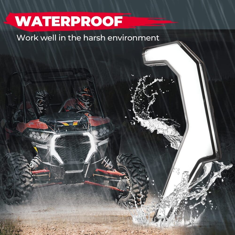 Waterproof: You never have to worry about driving in the rainy day or cross the river will damage your rzr led fang accent turn signal lights. Excellent water resistance allows the fang light lamp beads to keep working well and lighting.