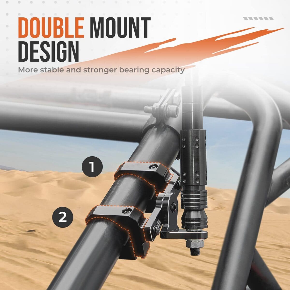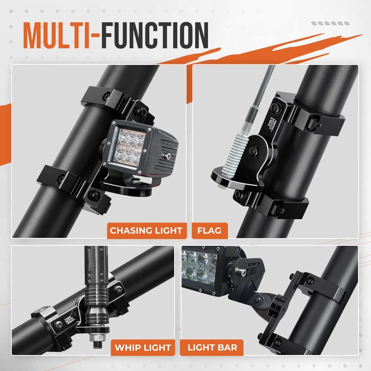 Kemimoto UTV Aluminum Whip Light Mount for 1.5"/2" Roll Cage