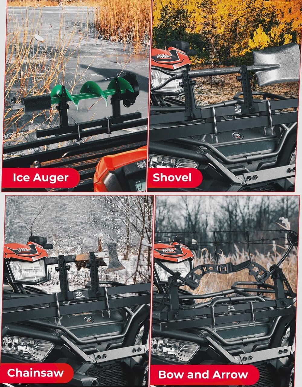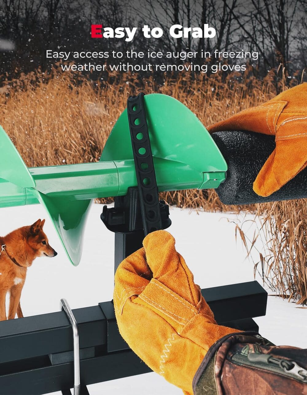 Easy to Grab: This U-bolt ice auger rack features a rubber strap design, allowing you to load and secure the ice drill in seconds without taking off your gloves, making it easy for you to grab in cold weather.
