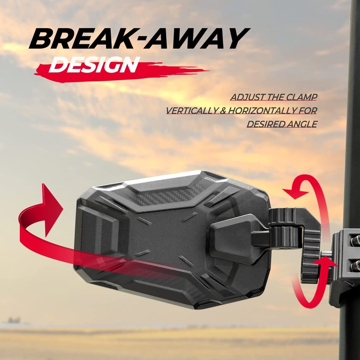 Breakaway Splash-Proof: UTV rear view mirrors can be folded inward and avoid crushing when you encounter obstacles such as branches in the trail. Upgraded splash-proof lens are not like other mirrors on the market that will splash and hurt people when broken.