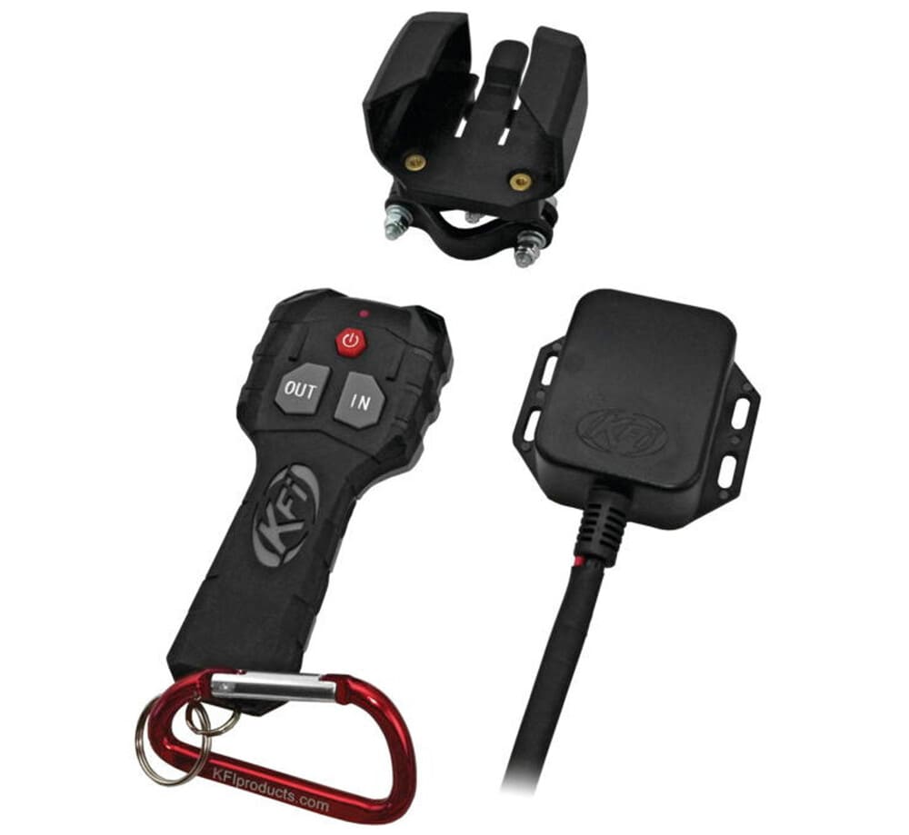- Kit includes wireless remote, receiver with wiring harness, holster, mounting hardware and wire tap.