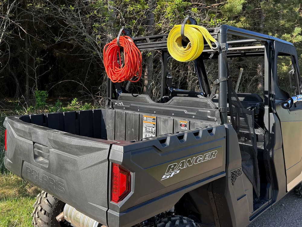 - Built to carry gear such as: Gun Boot, Hunting Blind, Wire Fence, Cords/Hoses, Tent, Fire Extinguishers (up to 6” Diameter), Recovery Kit