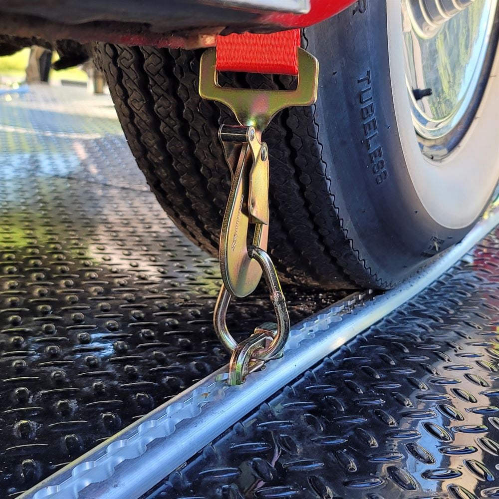 The Mac's Tie Downs Double Stud Pear-Shaped Ring is a versatile and robust accessory designed for securing cargo and equipment during transportation. This pear-shaped ring features two threaded studs that provide secure attachment points for straps, ropes, or hooks.