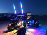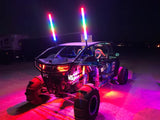 The Flash Whips are the brightest LED whip on the market. With up to 450 LEDs, these whips will light your whole campground. If you want to outshine all your buddies or lead the pack on night rides, these are the whips you want on your machine. Both the Bluetooth + Remote version and the remote control only version will feature hundreds of options including patterns, single color modes, flashing, strobing, and many more.